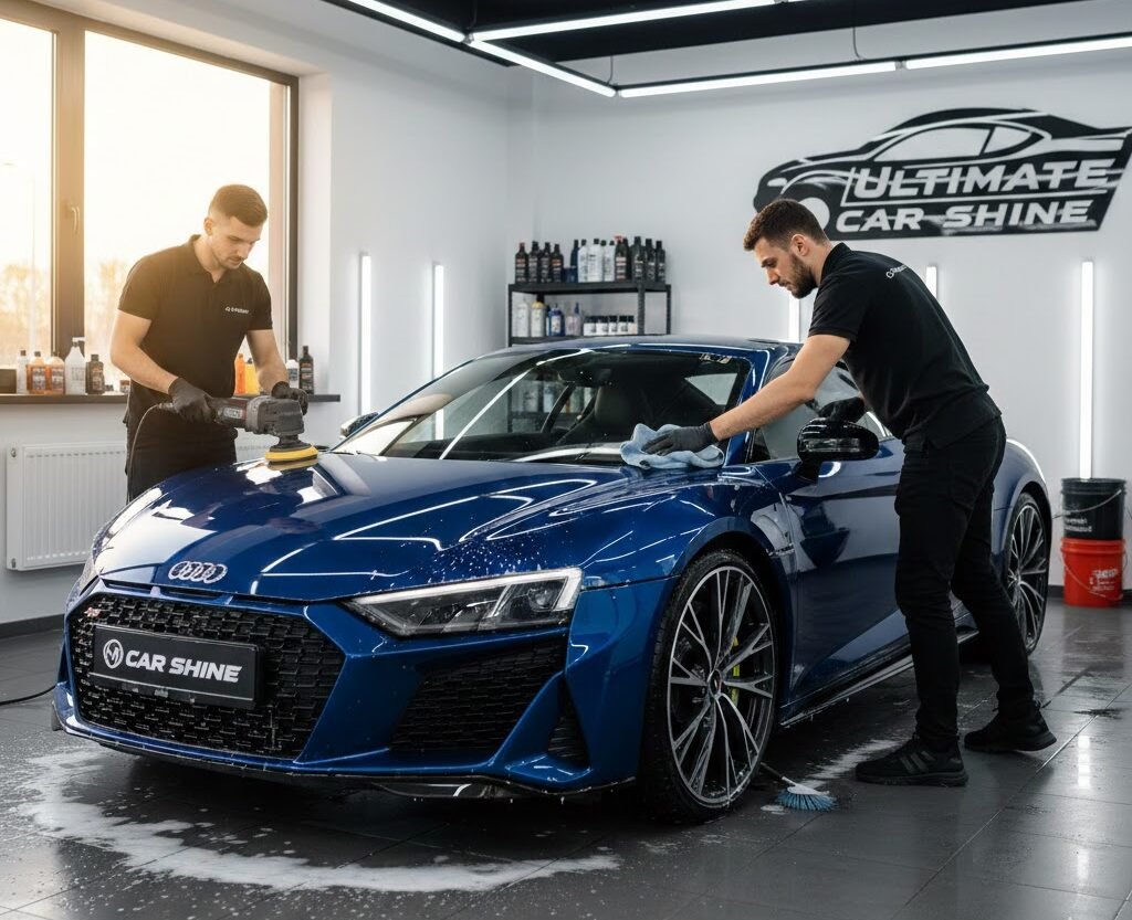 - Exterior Detailing – Focuses on washing, polishing, and protecting the car’s paint, wheels, and trim.